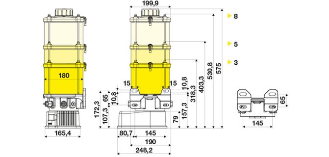 Motor operated pump s. C30B18 for oil 12 V DC with 1 pumping element, 8 litres reservoir, min level indicator and digital display